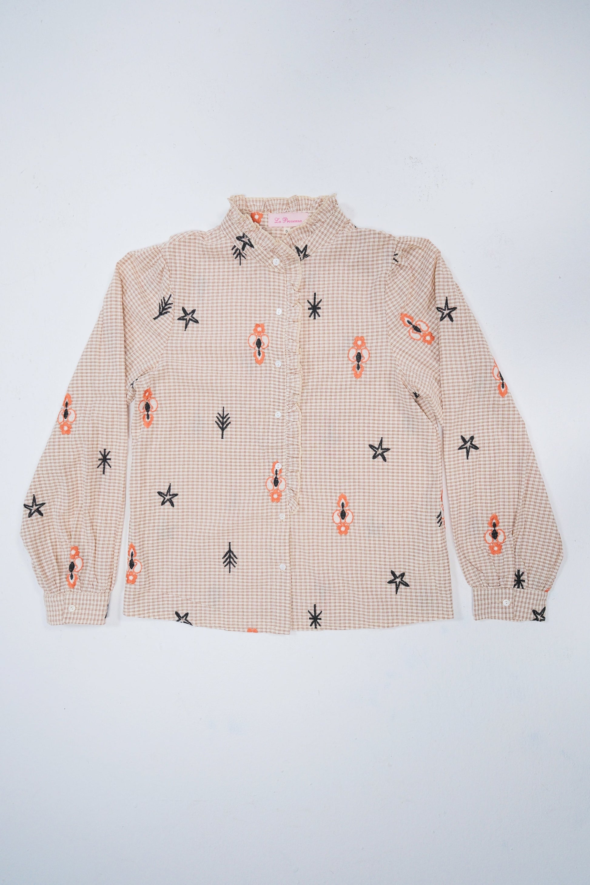 La blusa estampada en tonos beige con manga larga es perfecta para quienes buscan un estilo fresco y desenfadado sin perder la elegancia. Su tejido ligero aporta comodidad, mientras que el estampado en contraste con motivos geométricos y florales le da un aire juvenil y moderno.