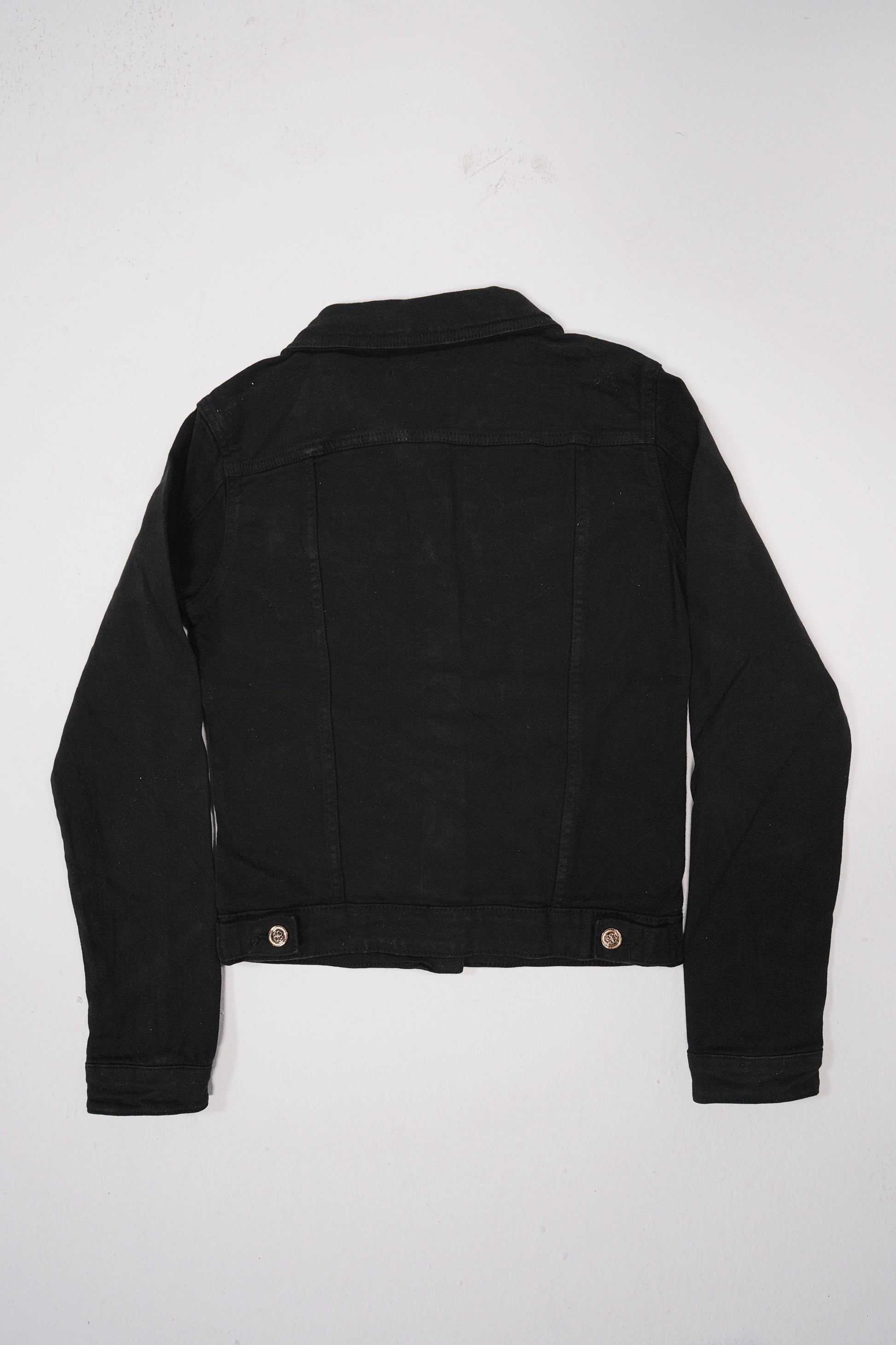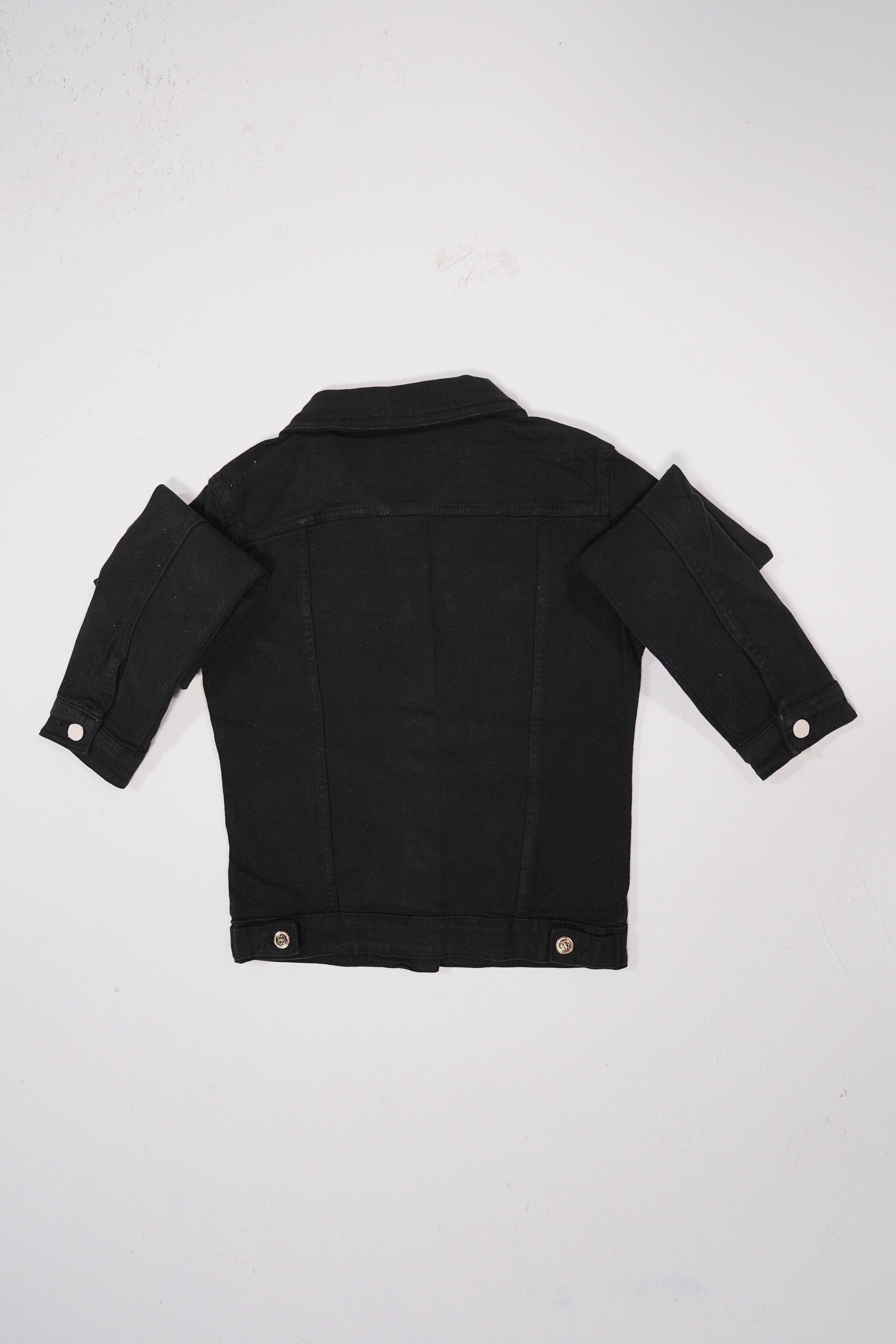 Presenta cuello camisero, manga larga y bolsillos delanteros con solapa, junto a botones color metálico que aportan un toque moderno. Su tono azul oscuro la convierte en una pieza fácil de combinar con vestidos, pantalones o faldas, perfecta para looks de día y de noche.