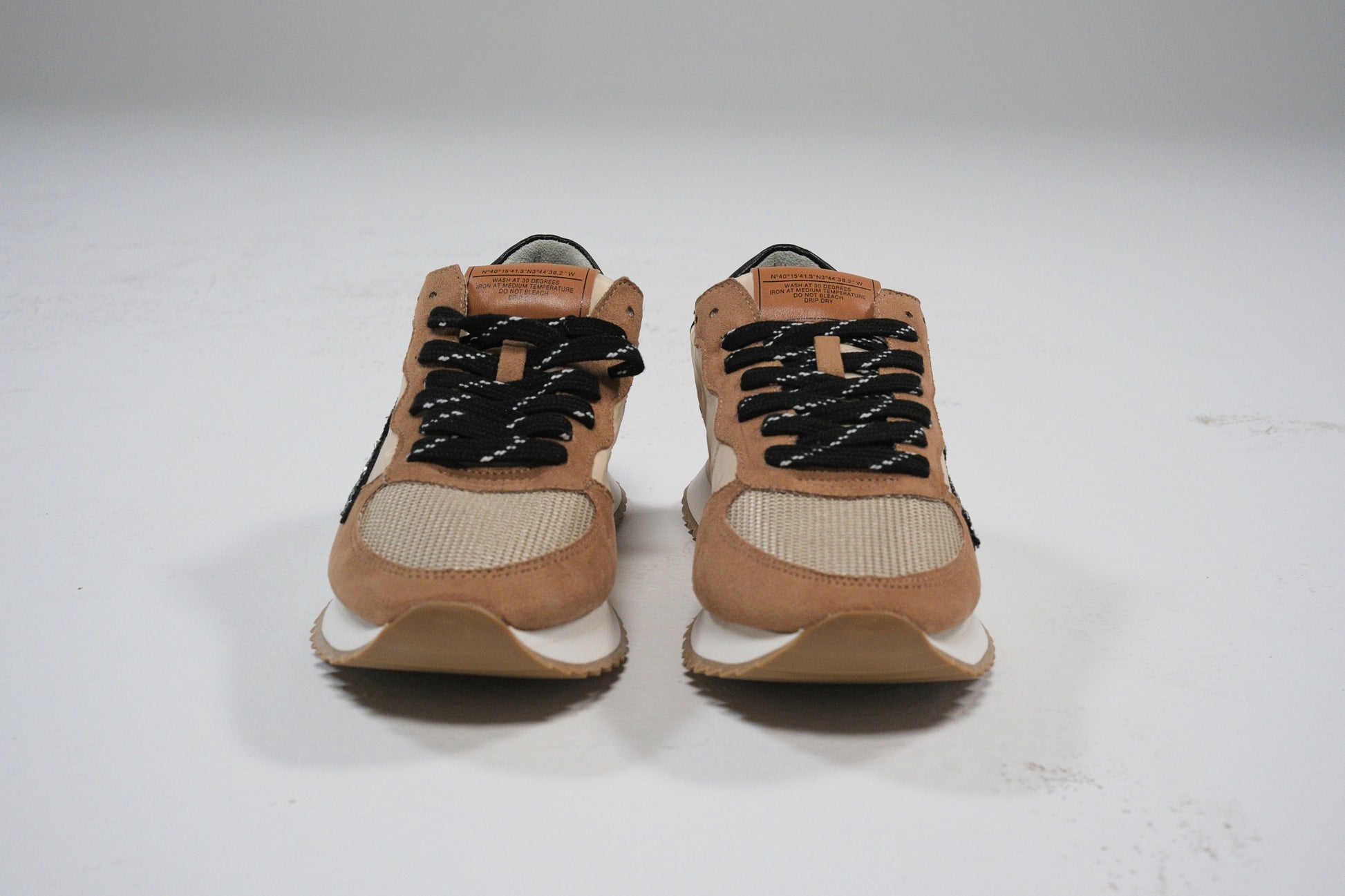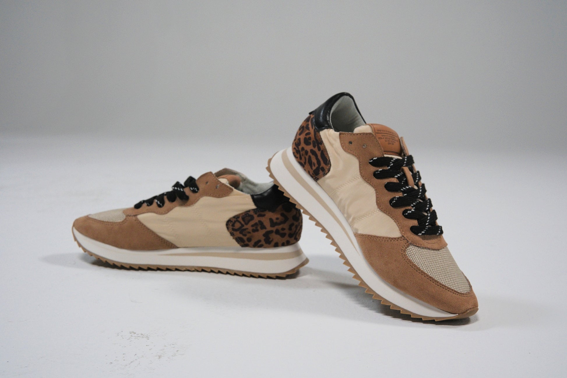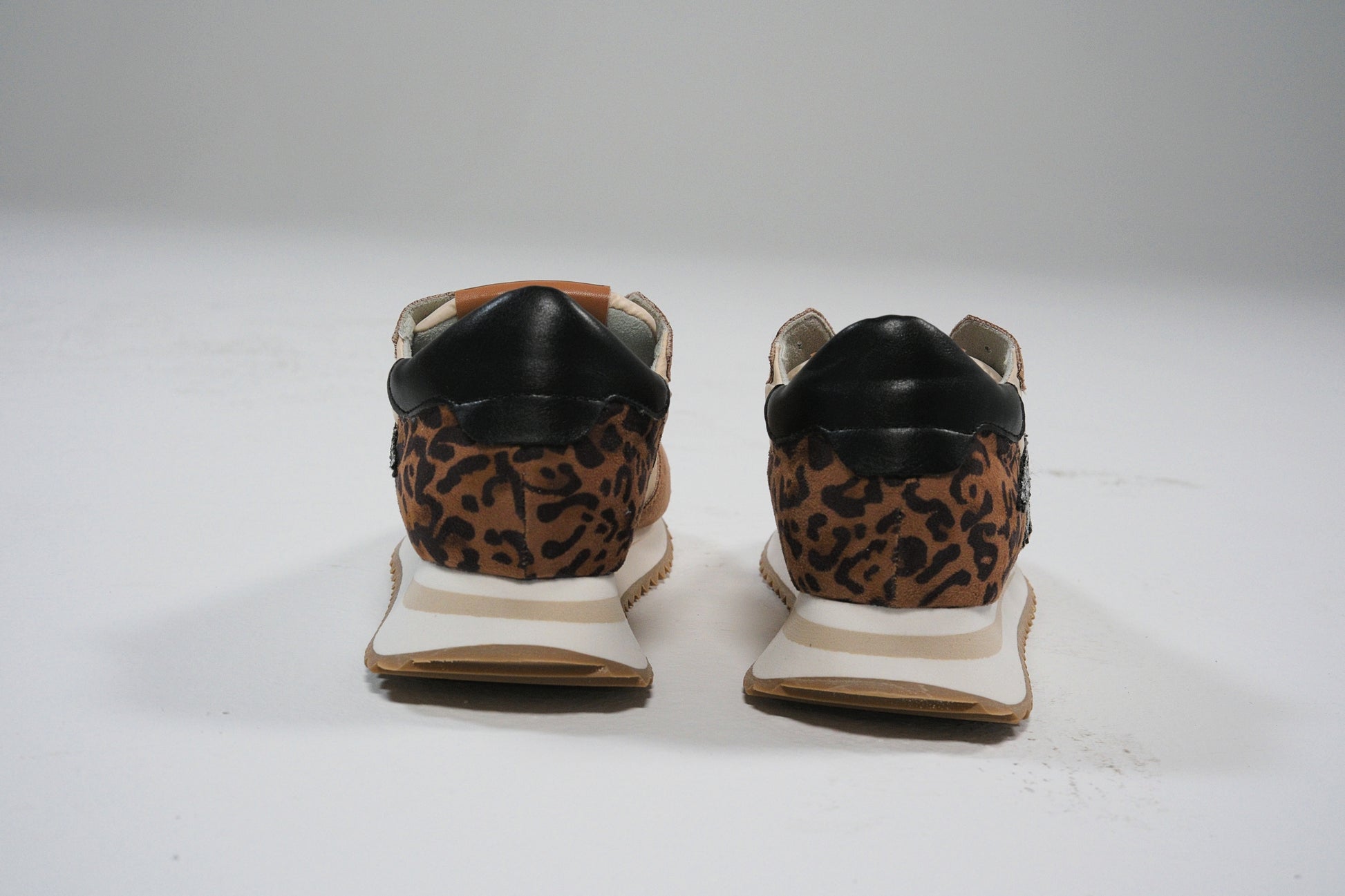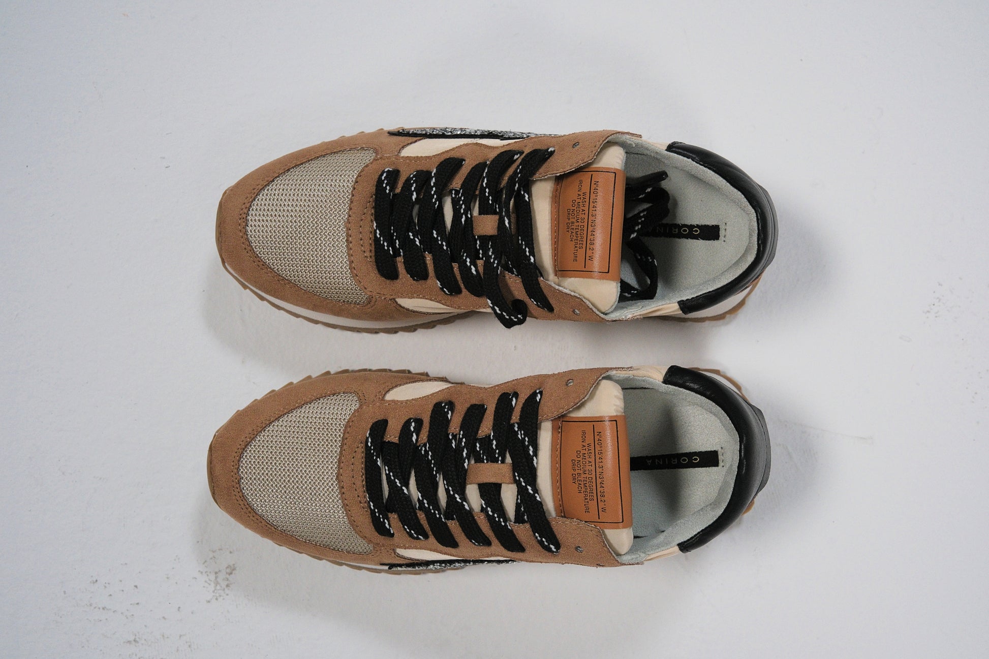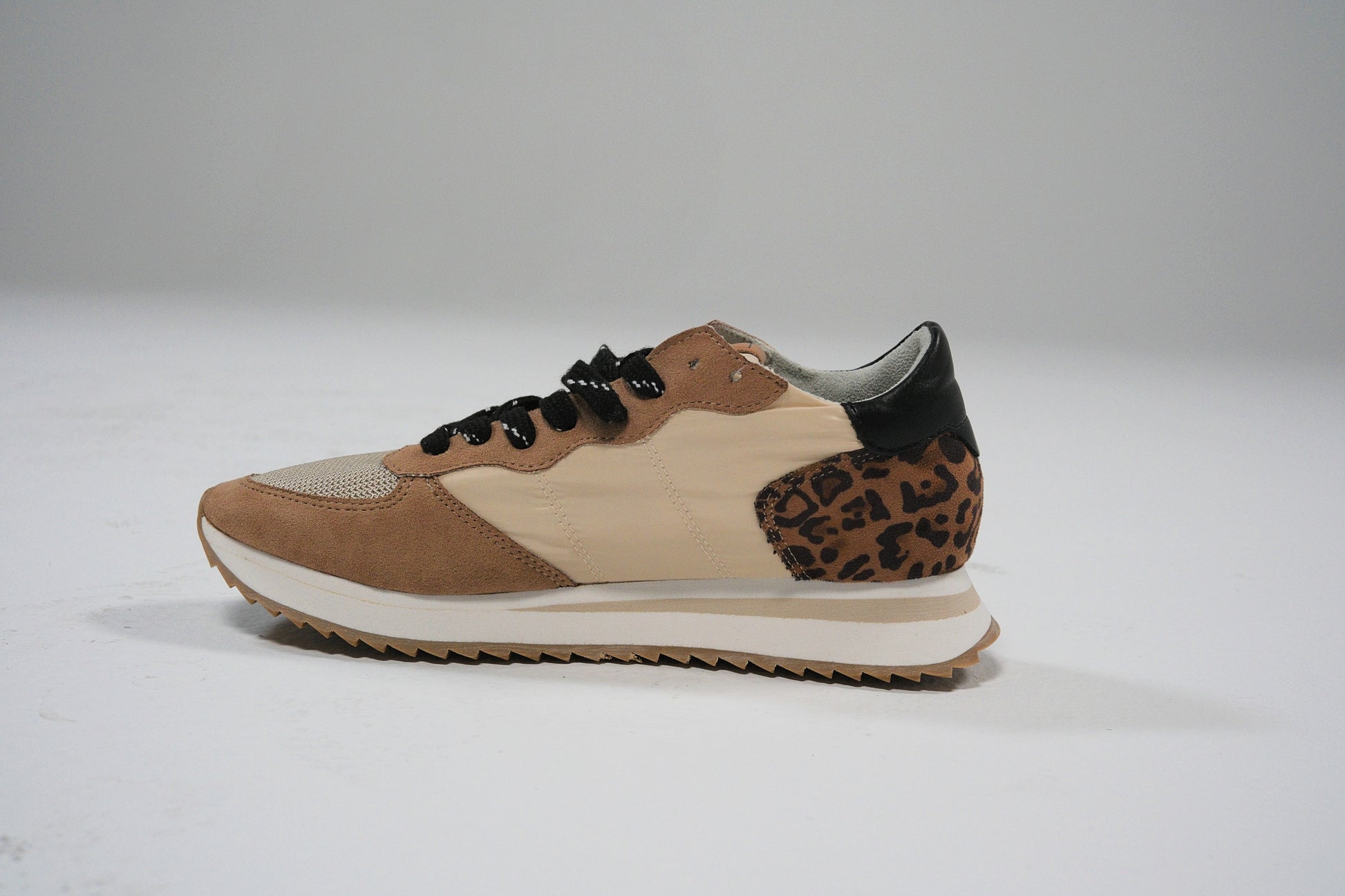 Las zapatillas deportivas beige y camel con detalle animal print combinan comodidad y tendencia en un mismo diseño. Su mezcla de materiales —tejido transpirable, acabados en serraje y paneles en tono camel— aporta textura y estilo, mientras que el refuerzo trasero con estampado animal print les da un toque atrevido y original.