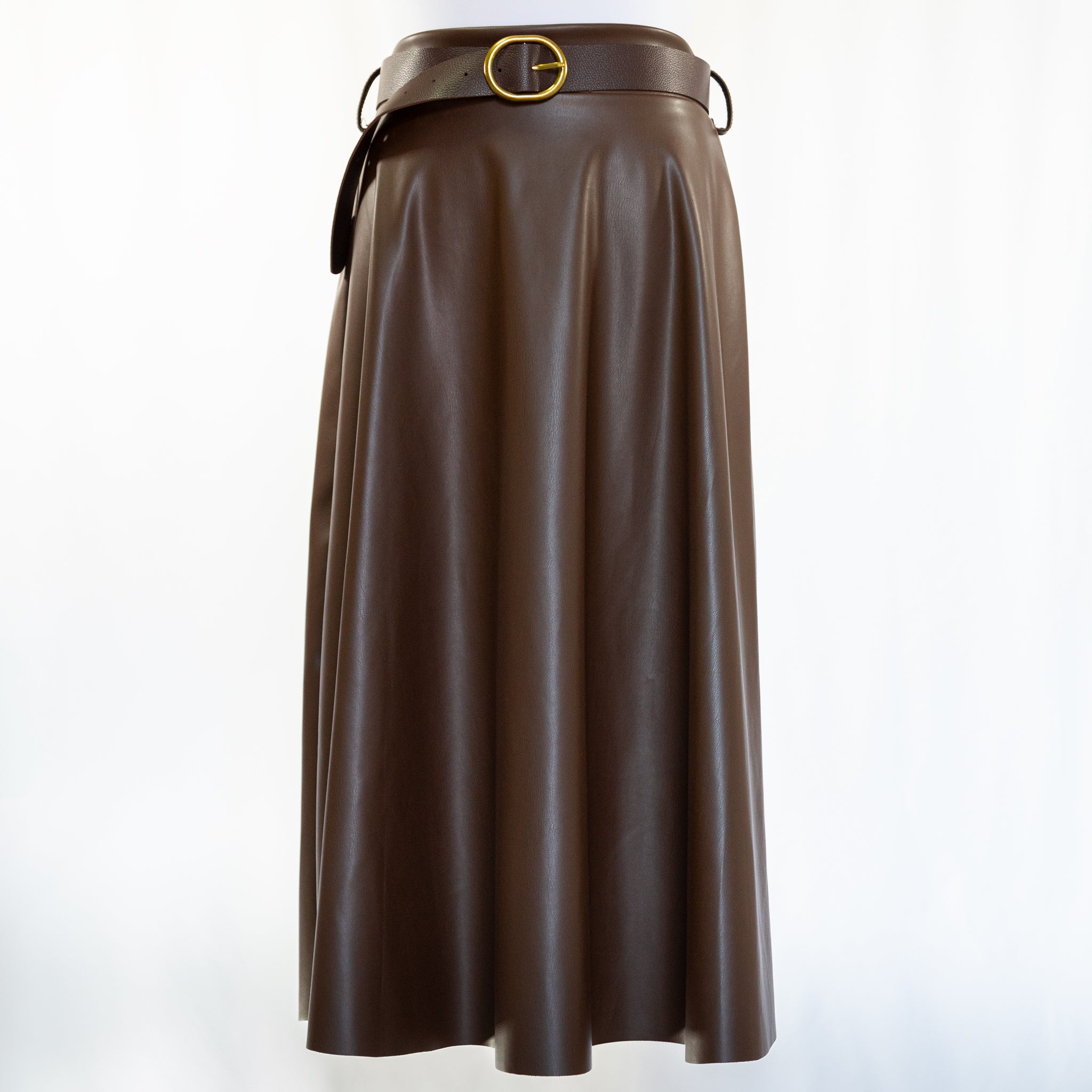 Falda cuero marrón con cinturón