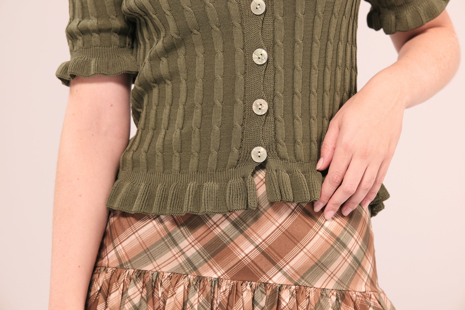 Estampado: cuadro escocés clásico en tonos tierra.