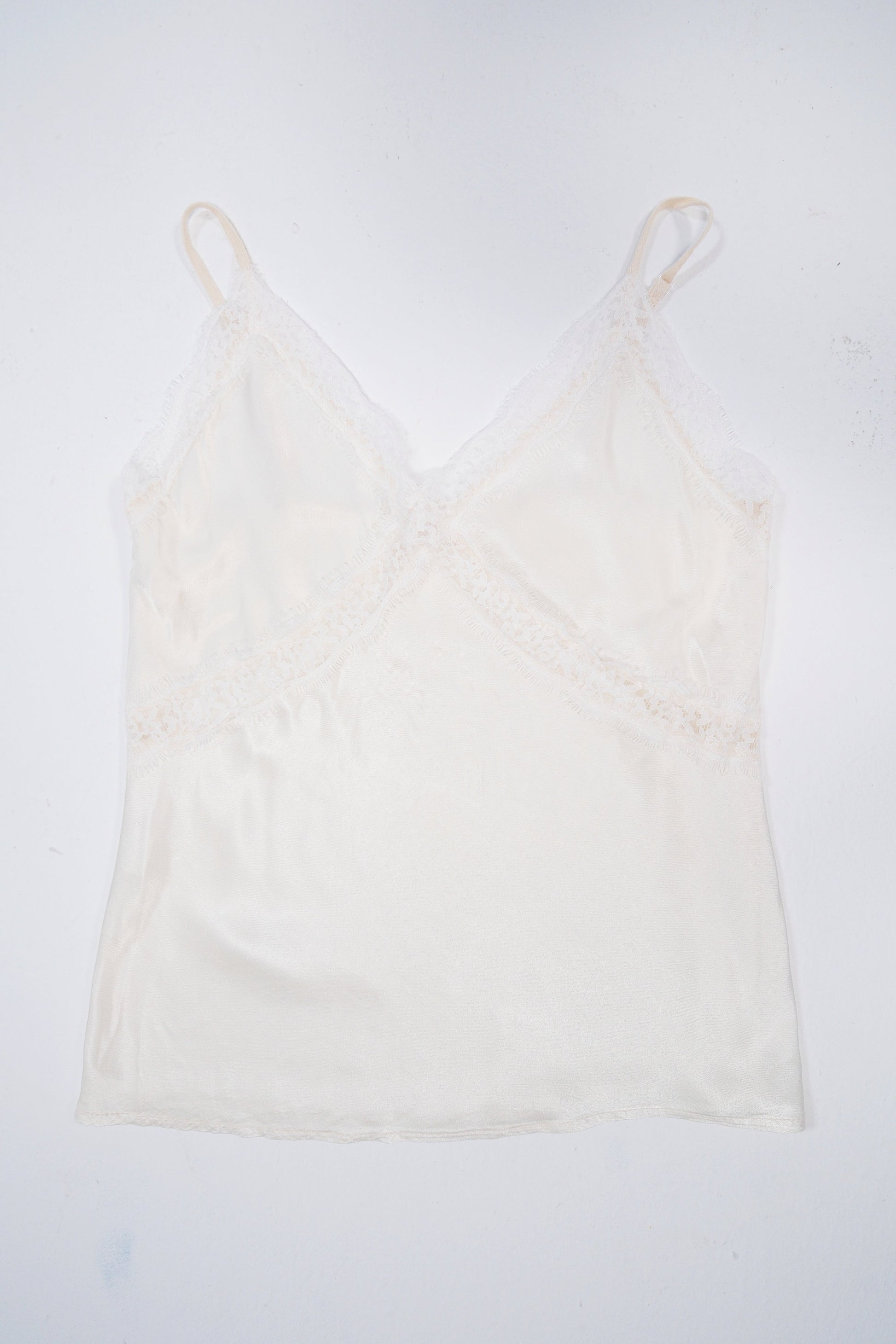 La camiseta lencera de tirantes en satén color marfil es un básico imprescindible en tu armario. Su tejido satinado aporta una caída ligera y elegante, mientras que los detalles de encaje en el escote realzan su aire femenino y sofisticado.