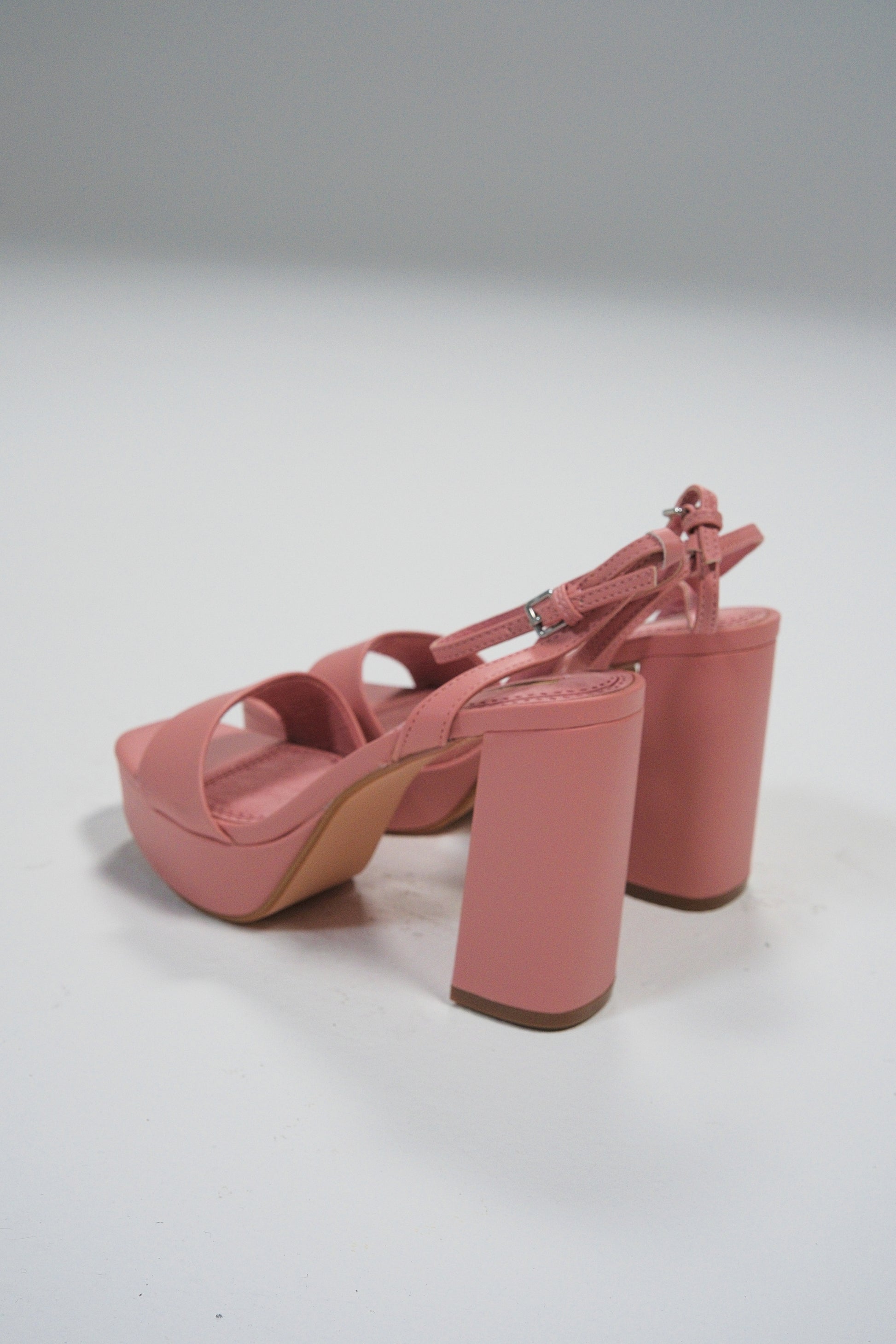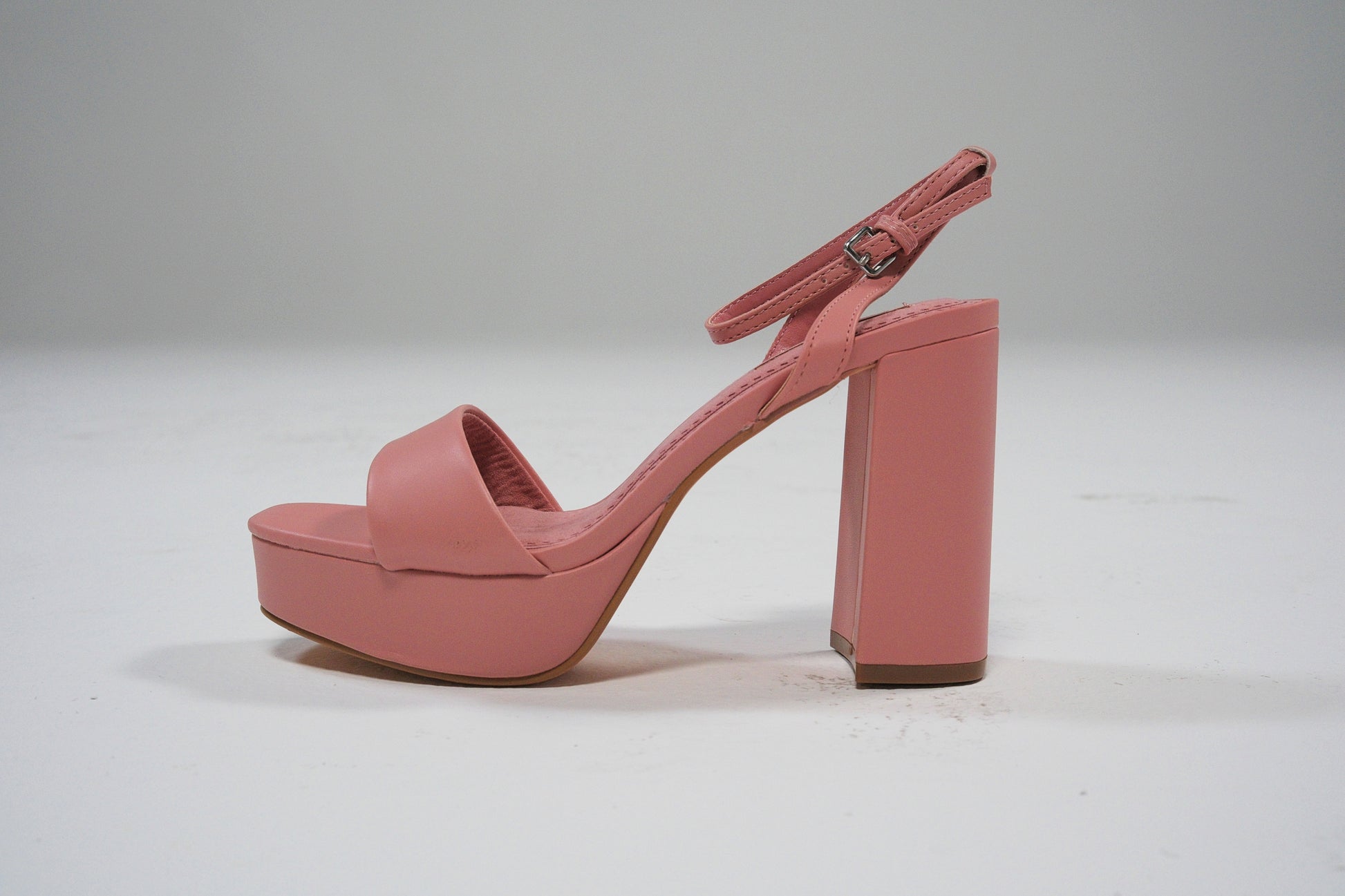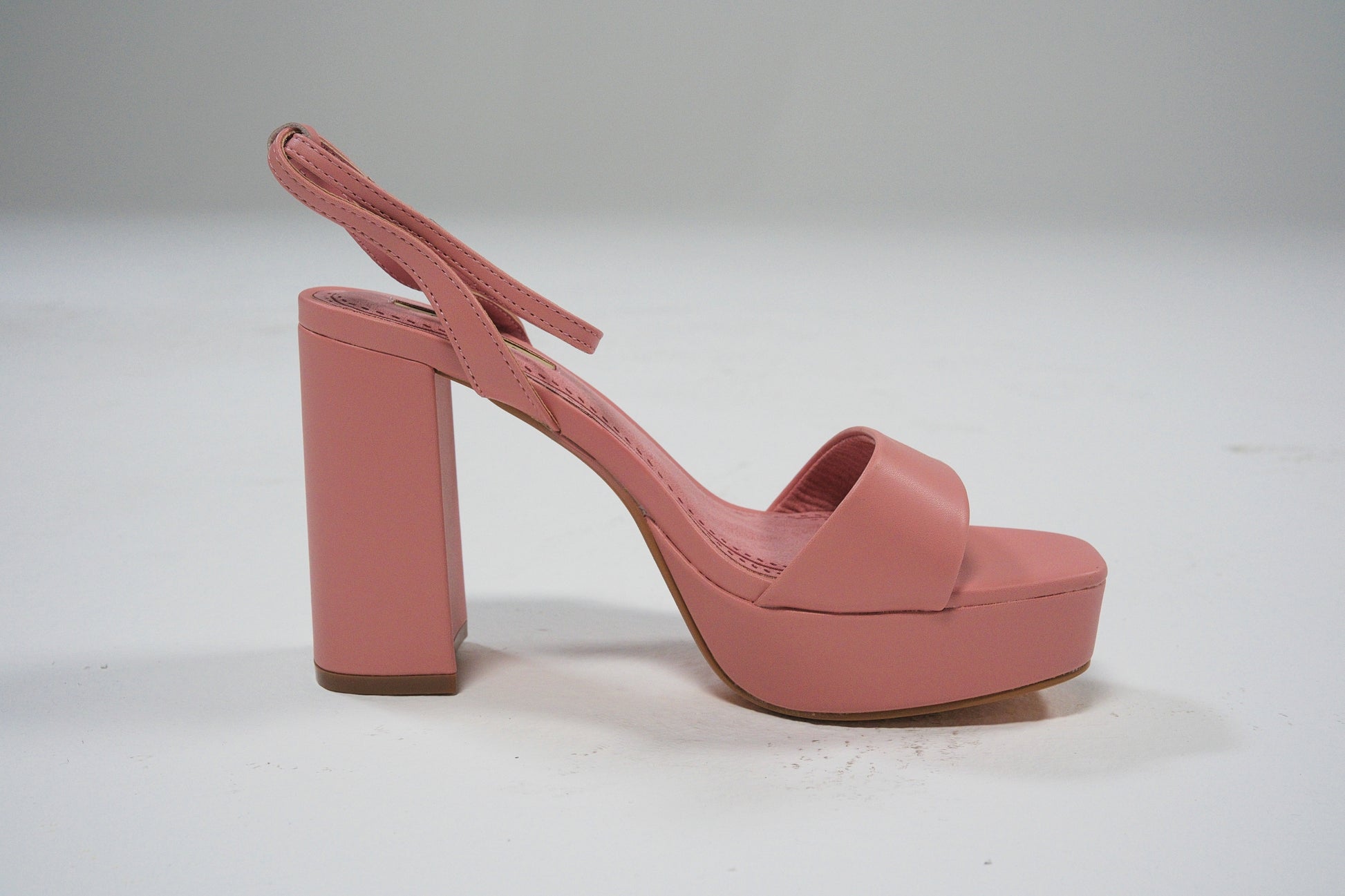 Los tacones rosa con plataforma y tacón ancho son el aliado ideal para elevar tus looks con un toque de elegancia y modernidad. Su diseño sencillo y sofisticado combina una tira delantera ancha con pulsera trasera que asegura la sujeción.